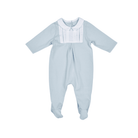 Body bleu en coton biologique pour bébé garçon avec application poitrine en lin doux.