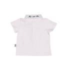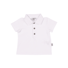 Polo blanc pour bébé garçon confectionné en Jersey de coton biologique doux et extensible. Il possède un col côtelé et des boutons en bois.