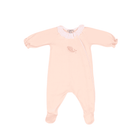 Jolie babygrow pour bébé fille, confectionnée en jersey de coton doux et extensible. Il présente un joli logo imprimé sur la poitrine d'une baleine rose et un délicat col en dentelle.