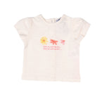 T-shirt ivoire en jersey "flammé" avec une broderie fuwri sur la poitrine et des manches froncées.