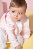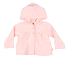 Une jolie veste réalisée en interlock et doublée d'un jersey imprimé. Fermeture par boutons-pression sur le devant et passepoil jaune sur la poitrine.