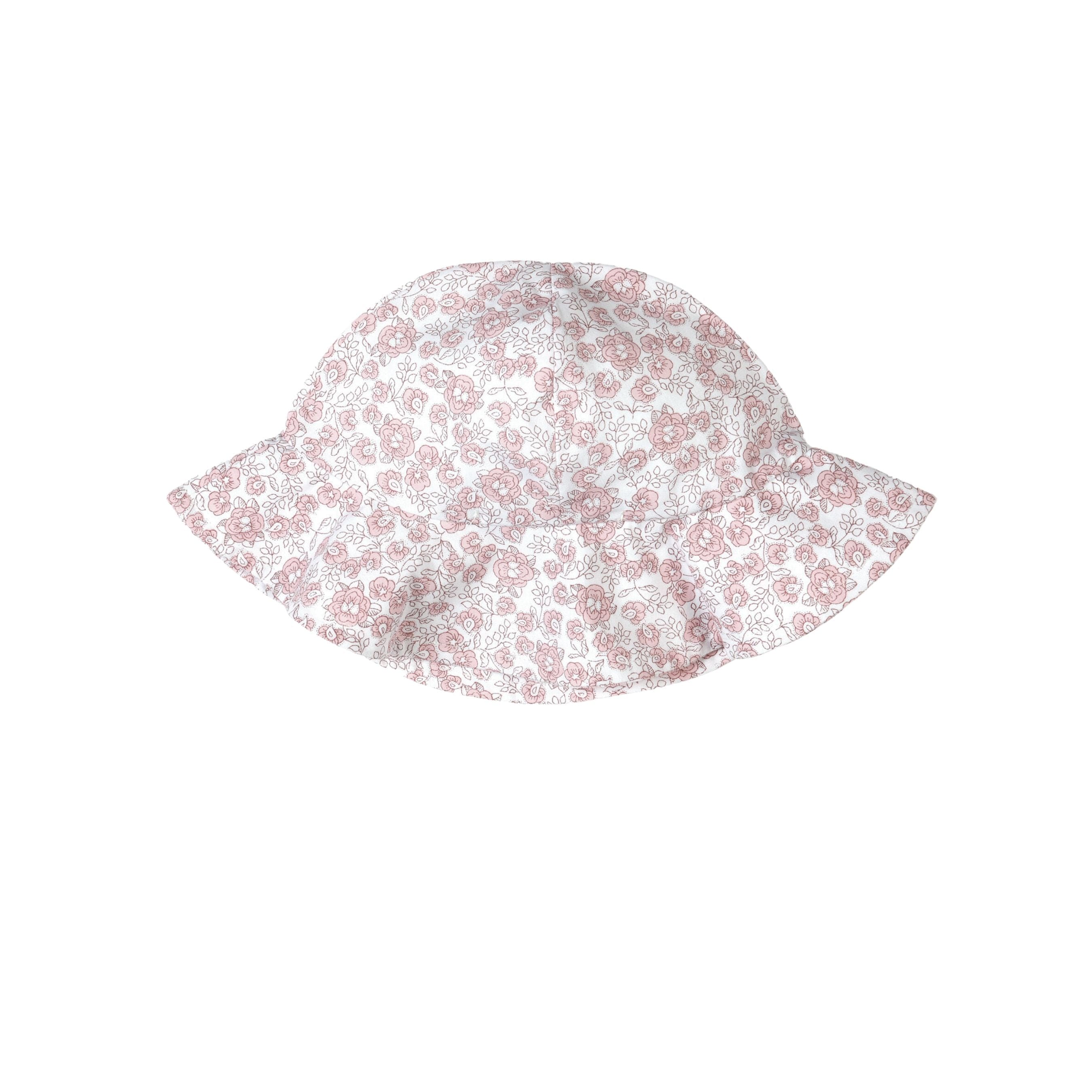 ROSE DOUCE | Girls - Chapeau de soleil rose en coton à imprimé floral