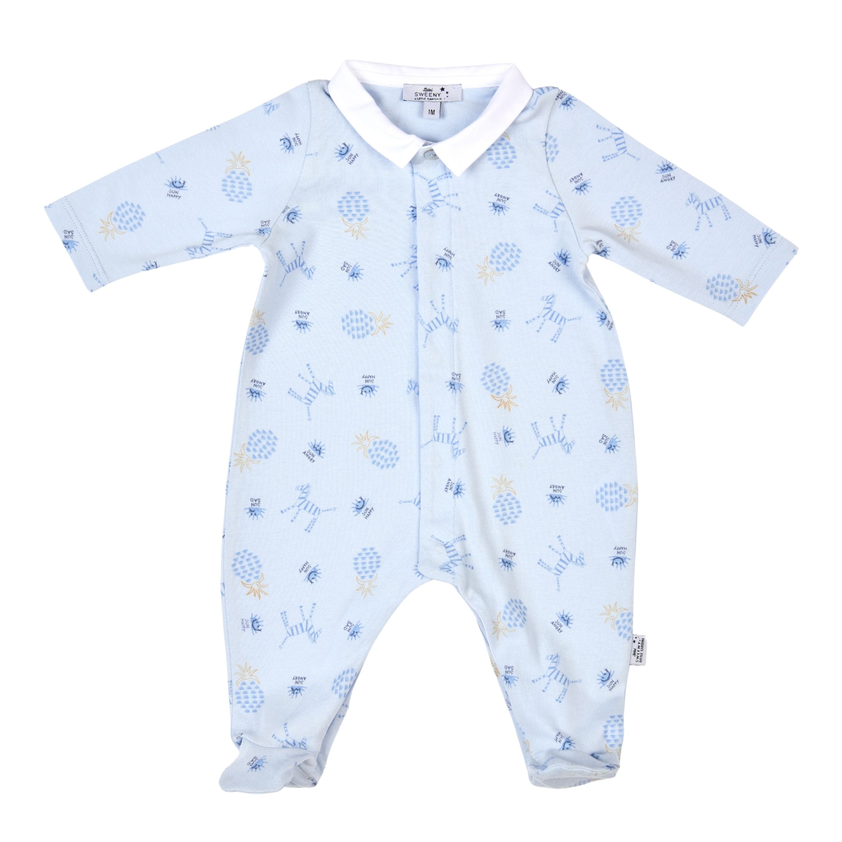 Babygrow en jersey bleu pour garçon avec imprimés zèbre et fruits