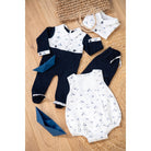 PETIT MARCEL | Boys White & Navy Blue Cotton Shorts Set