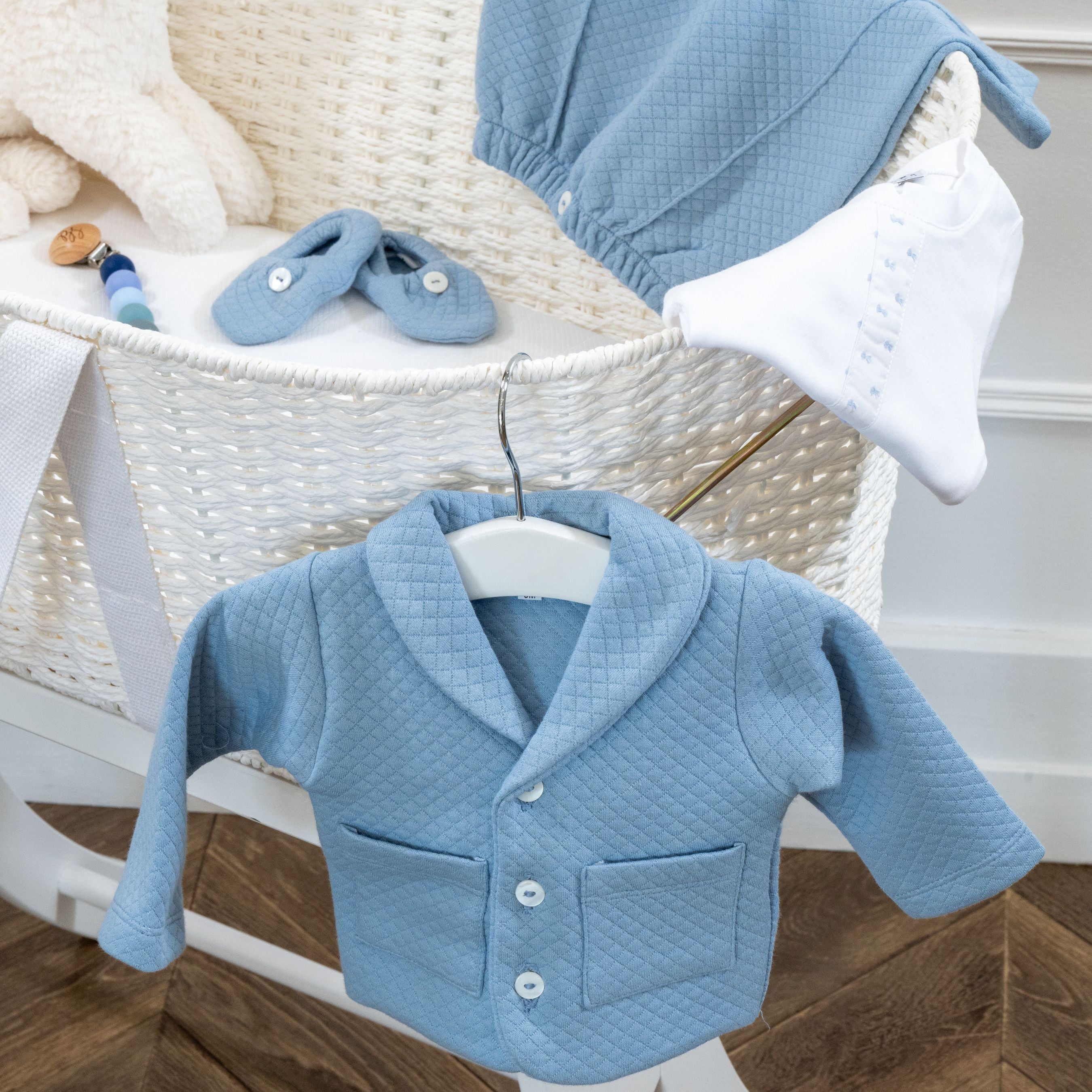 The quilted texture adds a sophisticated touch while ensuring softness and flexibility for little feet. Perfect to complete the Leo outfits for a coordinated and timeless baby look.