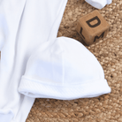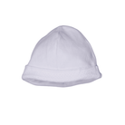 Baby white layette hat, made in soft cotton velour. This adorable hat has a white lace detailing. Lined with soft cotton jersey, It easily slips on over your babies head to keep them warm.