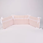 Tour de lit réglable rose nude en piqué de coton doux et détails en dentelle.
