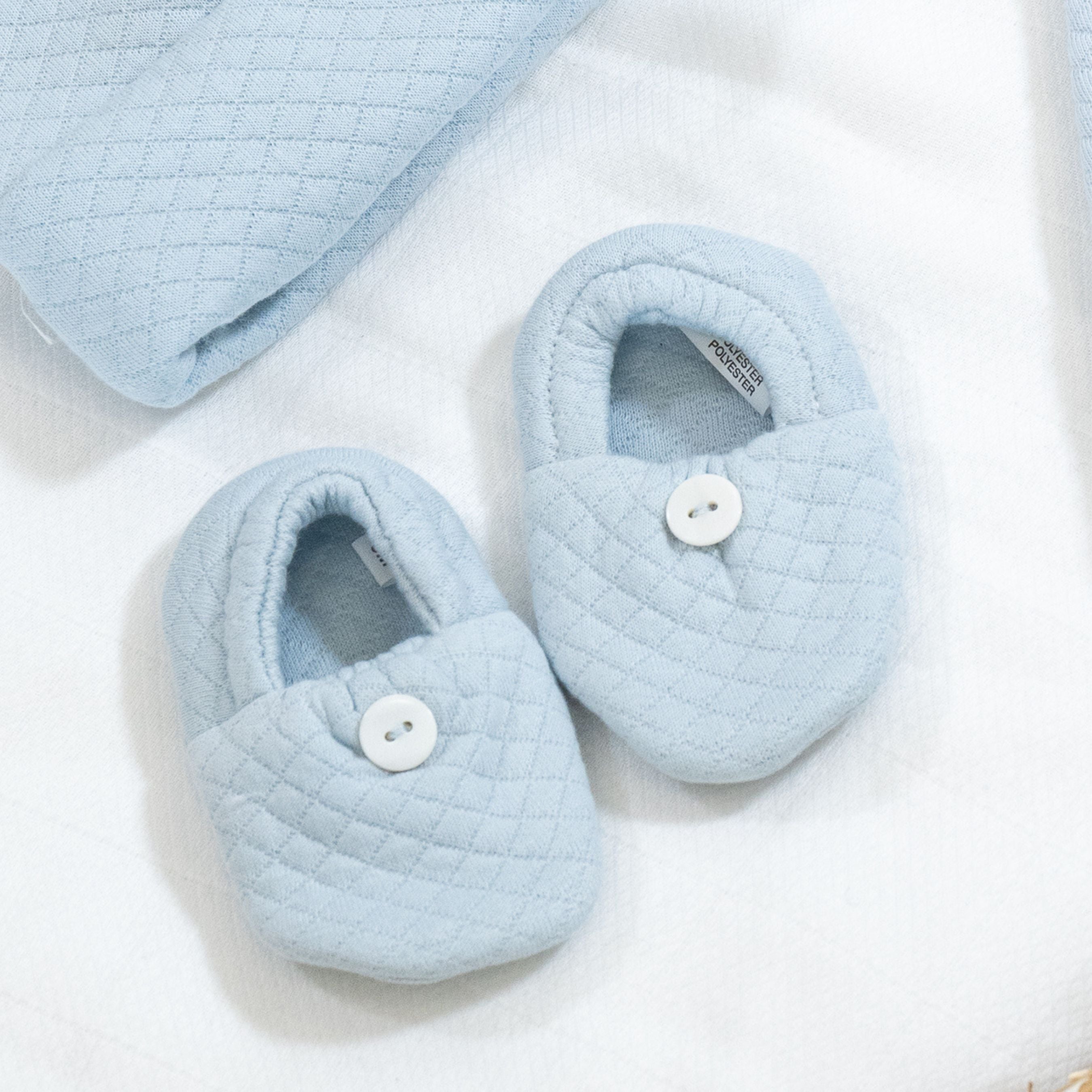 NOLA | Pale Blue Quilted Cotton Baby Booties