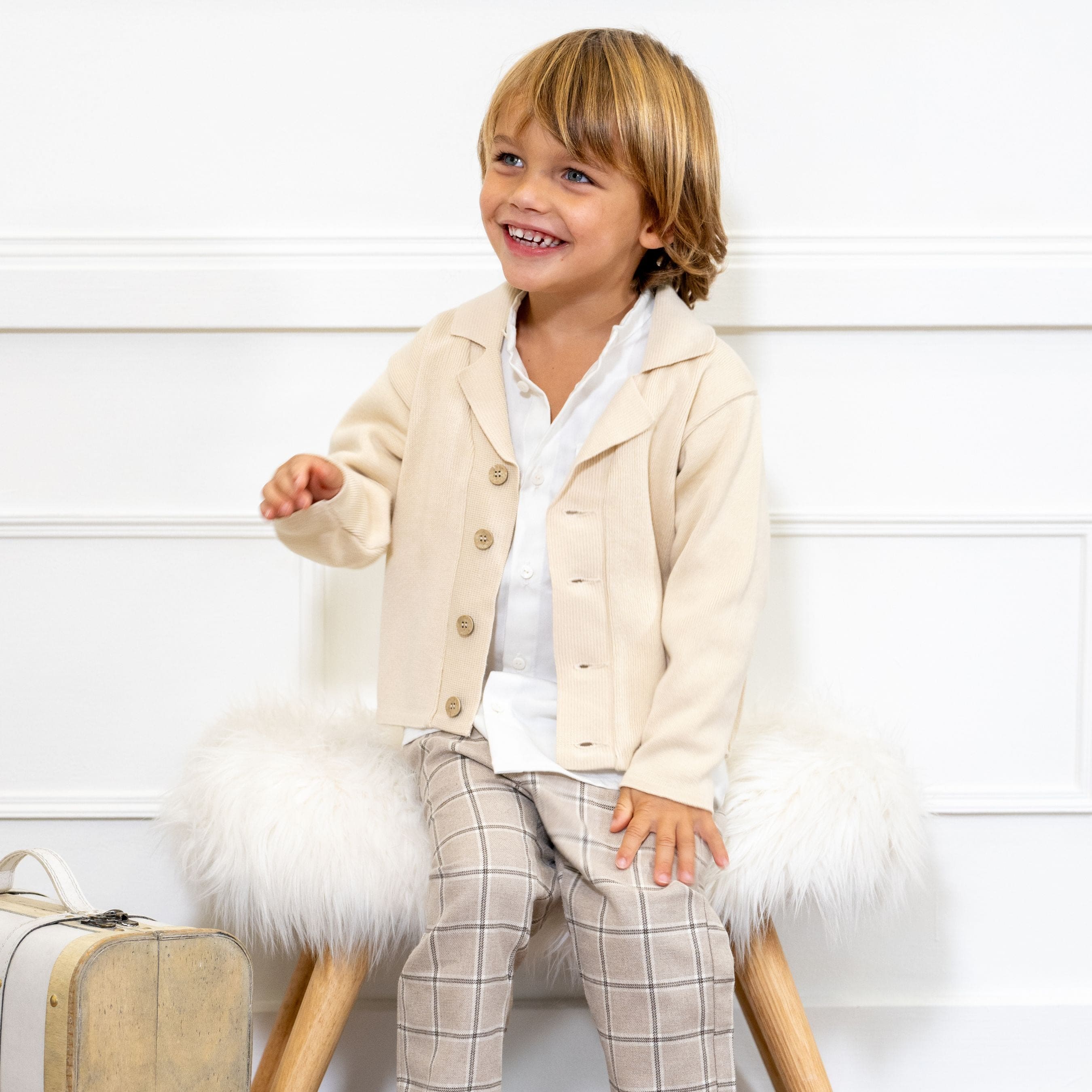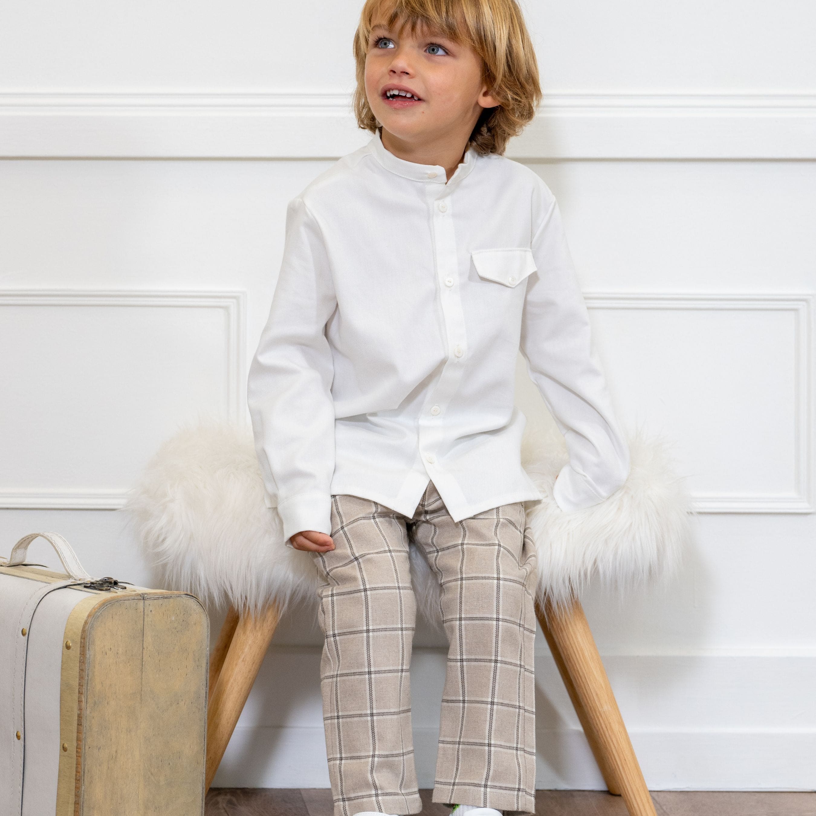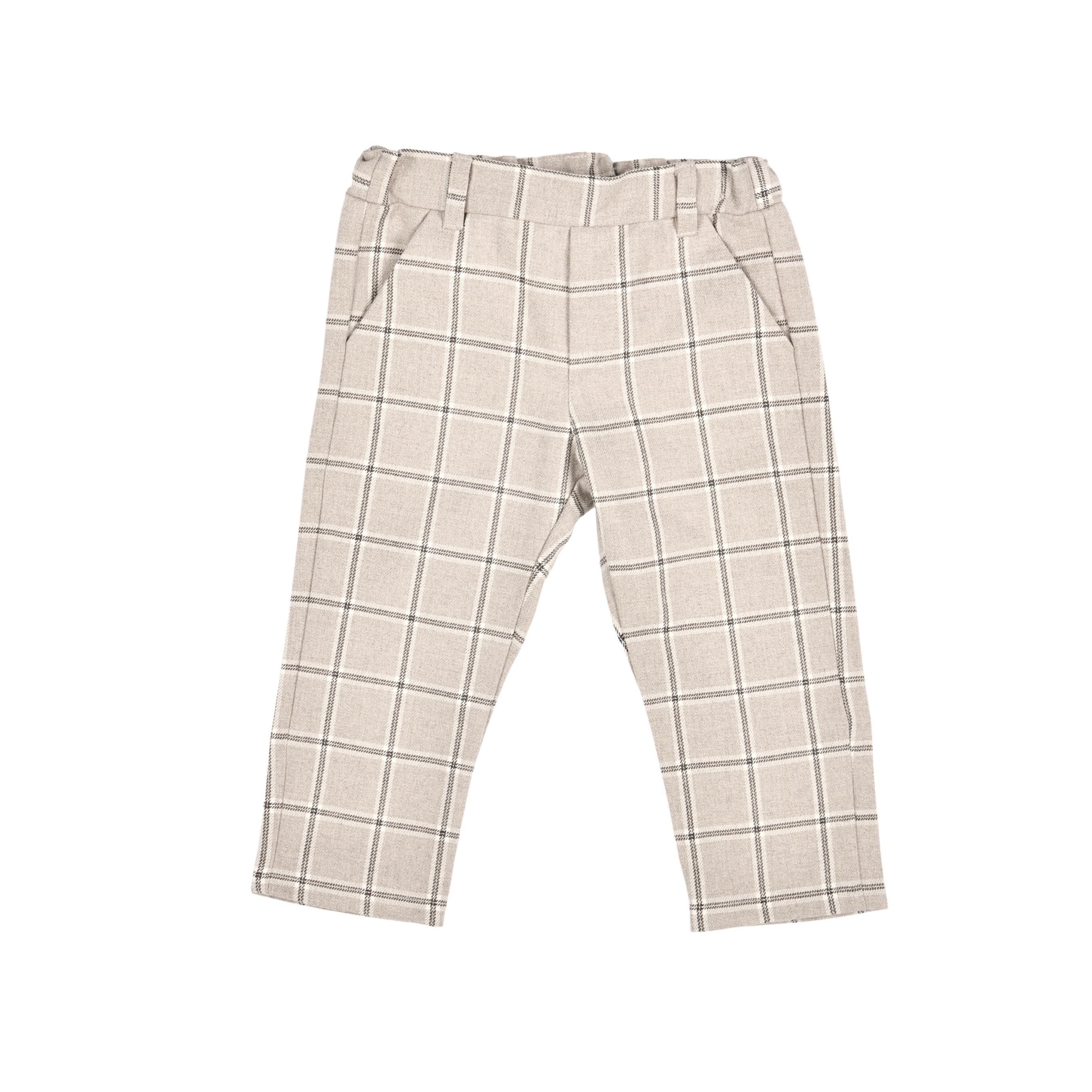 ELTON | Boys Beige & Brown Check Flannel Trousers