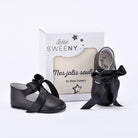 Made from soft leather, these black pre-walker shoes for girls are expertly handmade and feature delicate black satin ribbon ties on the top. Ideal for special events, they offer a cute and sophisticated touch.
