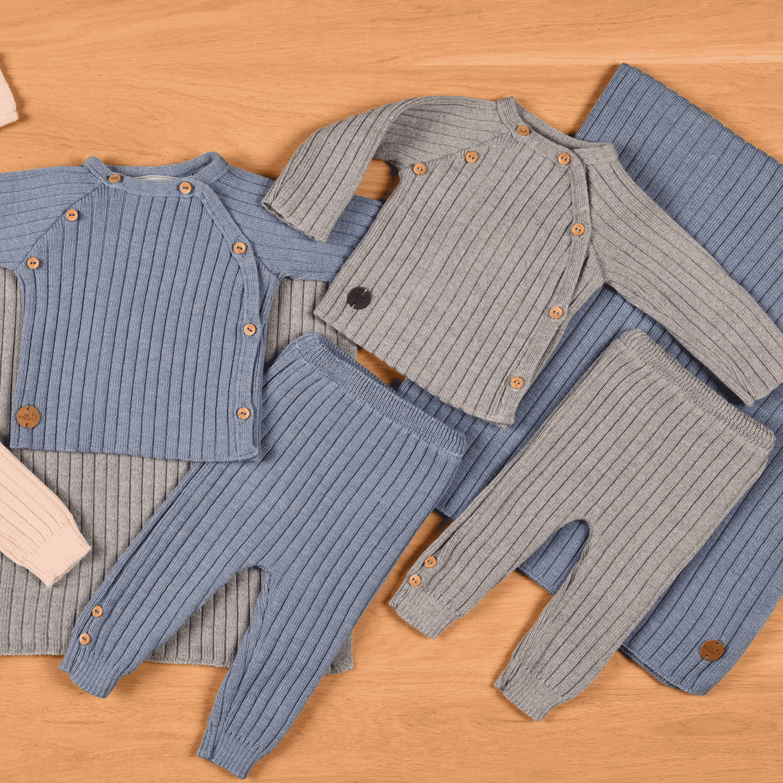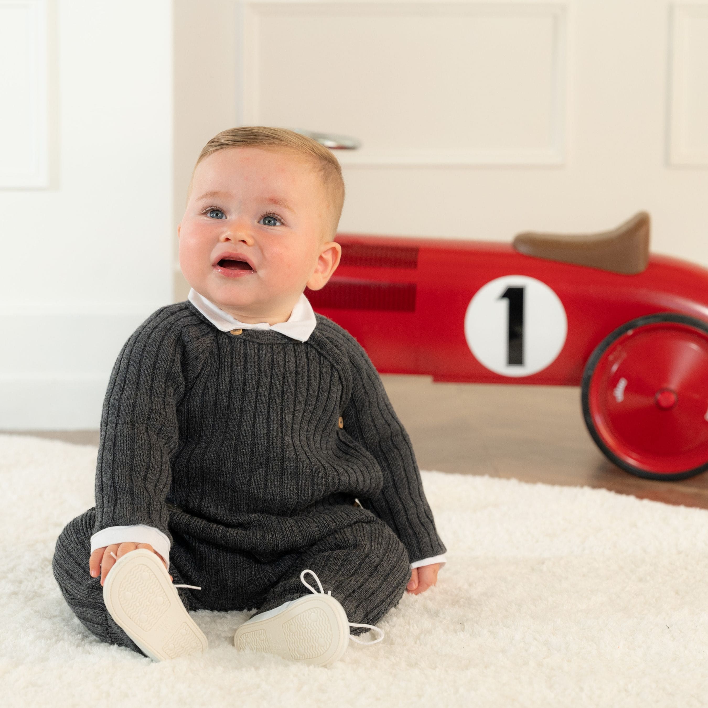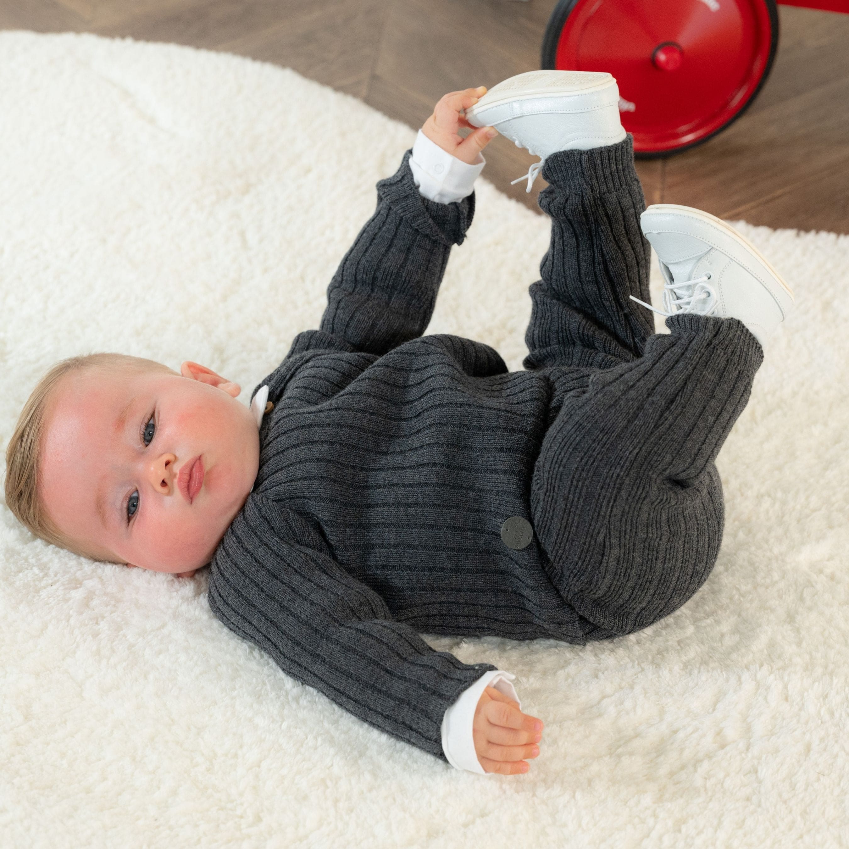 Boys Grey Knit Ribbed Trouser Set (2) | Made in France