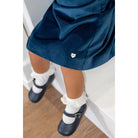 Girls smart navy blue leather shoes. Made and lined in soft supple leather, this classic Mary Jane style has a comfortable padded leather insole. They have lovely punch hole detail on the front and fasten with a buckle. the side.