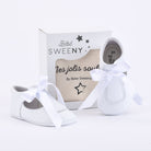 Expertly crafted handmade leather shoes for little girls, designed for special occasions. Featuring a soft, padded insole with absorbent lining for comfort. Adorned with white satin ribbon tie fastenings for a stylish touch.