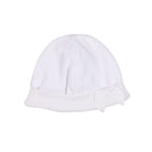 This baby girls' velour hat is made with soft, stretchy fabric and features a charming white bow on the turned-up trim. Lined with a soft white jersey, this hat is part of the Purity line.