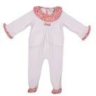 This all-in-one  for girls is made from pointelle cotton jersey. Designed with a floral print collar, it is gentle and comfortable on delicate skin. With popper fastenings on the back, this one-piece ensures practicality and cuteness for your little one.