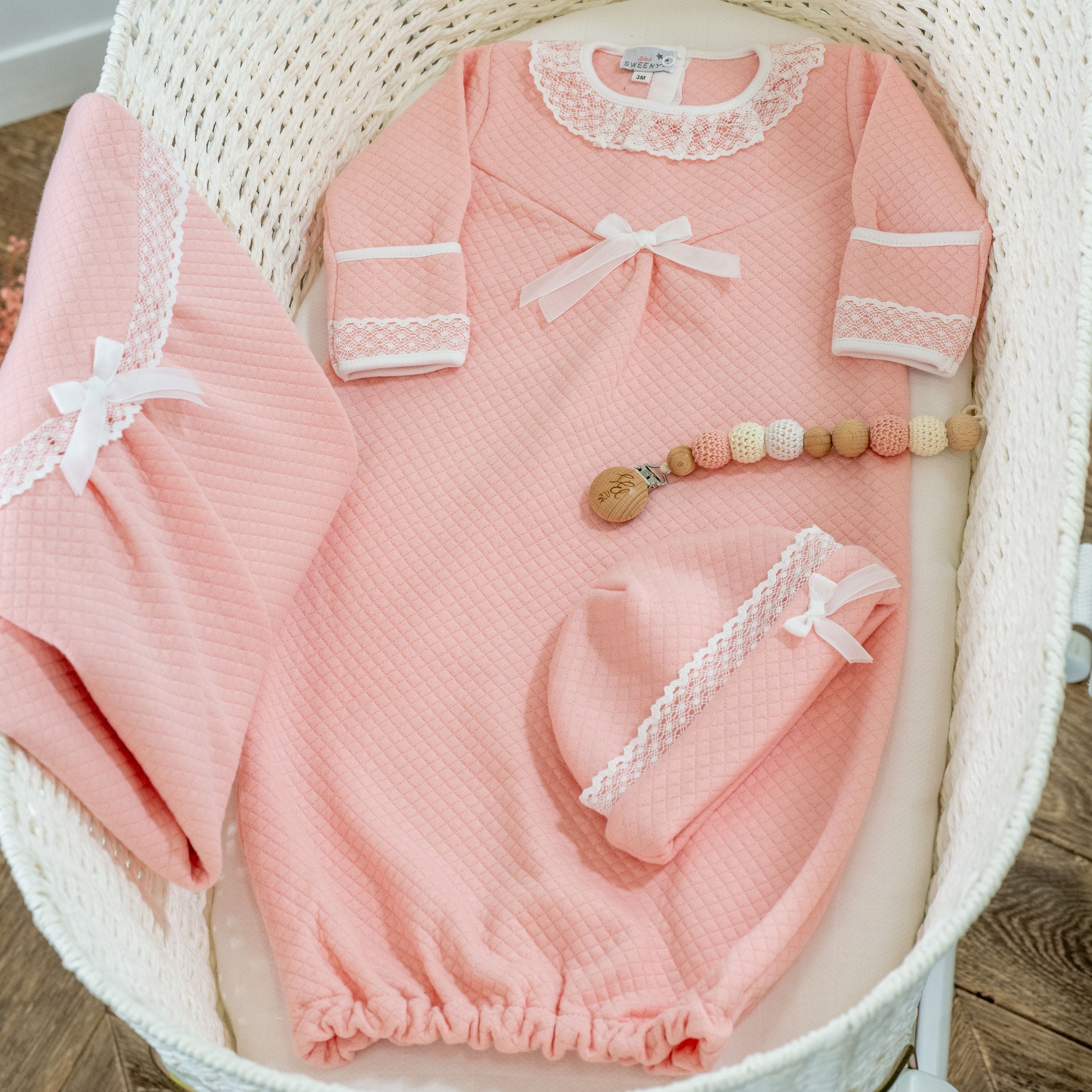 The Nola collection also includes matching pieces to create a coordinated and elegant set for baby.