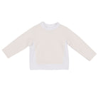 Ivory sweater for baby boys made in soft organic cotton sweatshirt jersey. Ribbed panels down the sides and white faux leather logo.