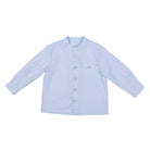 This blue collarless cotton shirt for boys is perfect for a smart-casual look. It features logo mother-of-pearl button fastenings and a faux chest pocket for added style. The relaxed fit is enhanced by back pleats and side vents for comfortable movement.