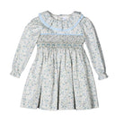EGLANTINE | Girls Blue Hand-Smocked Floral Dress