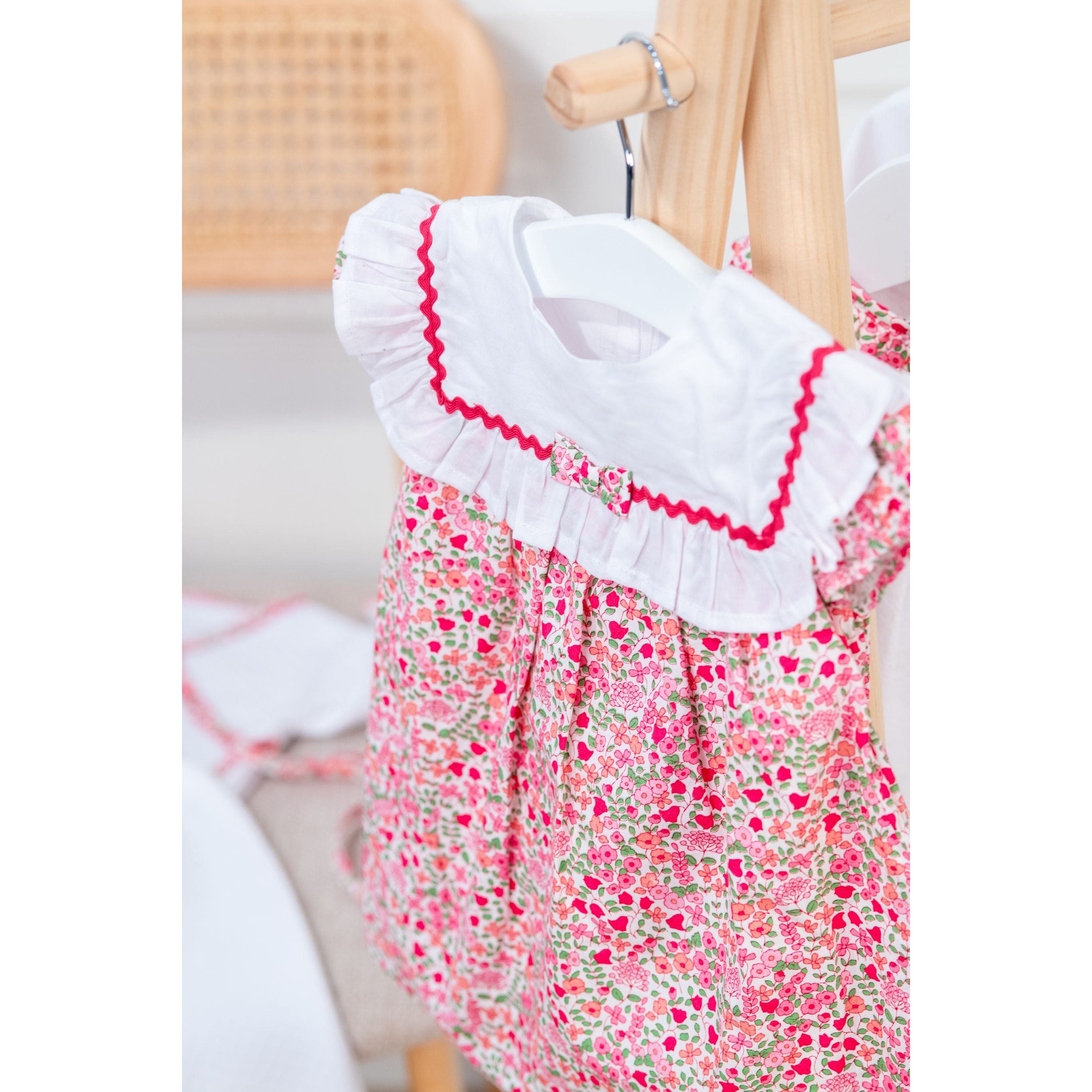 Discover the essence of spring with this delightful infant dress featuring a delicate floral print in shades of pink and green. Versatile enough for any event, simply add sandals and a hat for a perfect outfit. Also includes a bloomer for a complete and stylish occasion set.