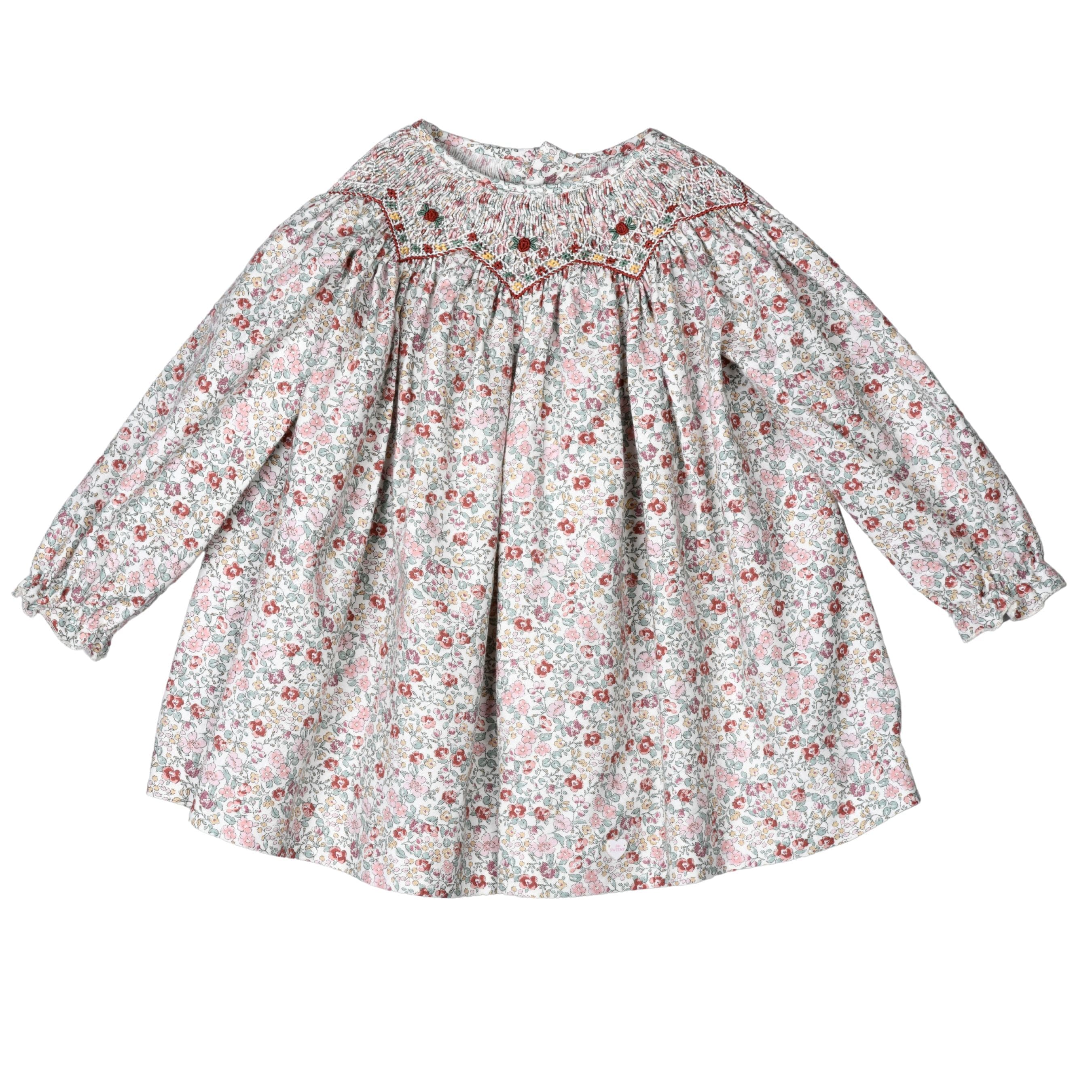 EDNA | Girls Pink Hand-Smocked Floral Dress