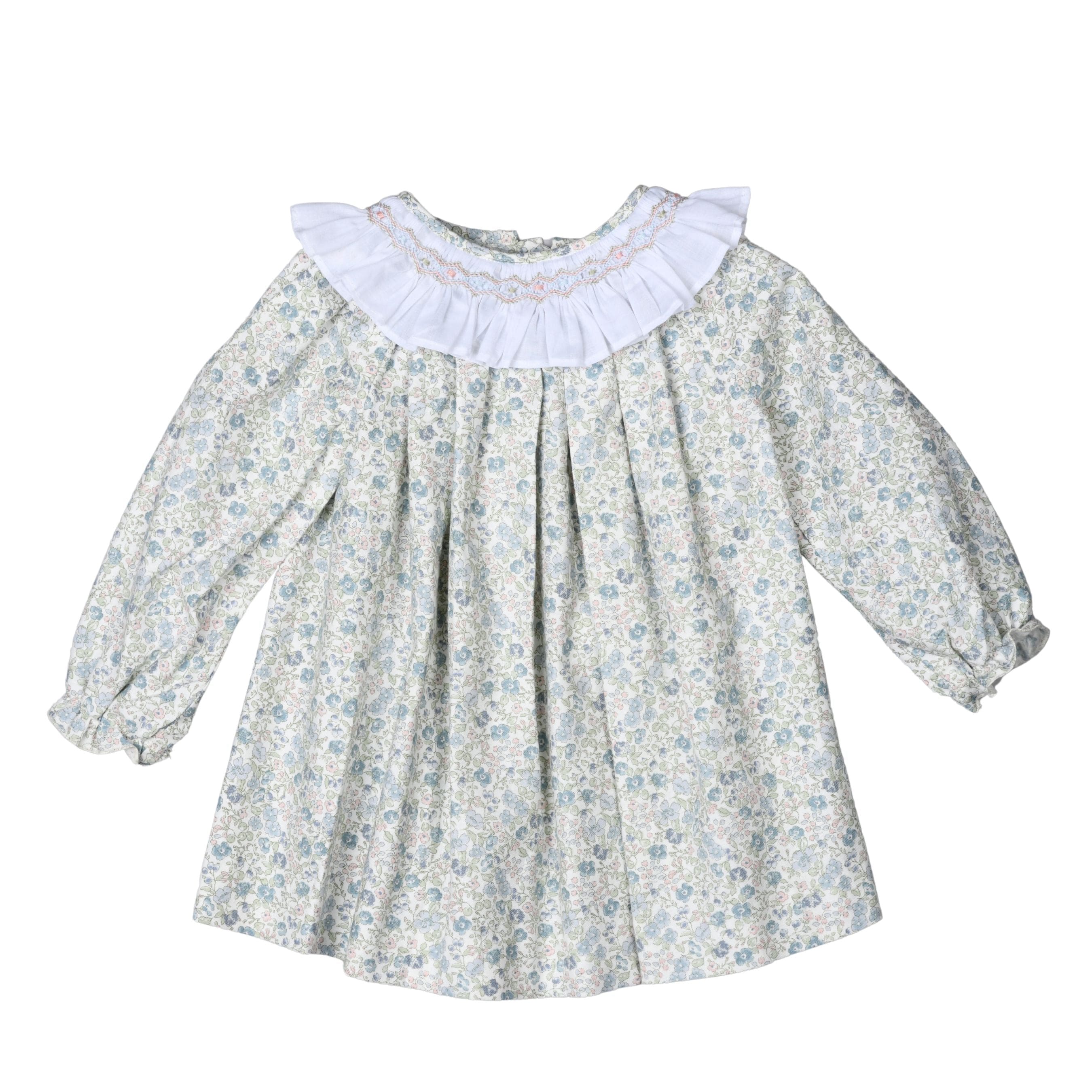 EMMA | Girls Blue Hand-Smocked Floral Dress