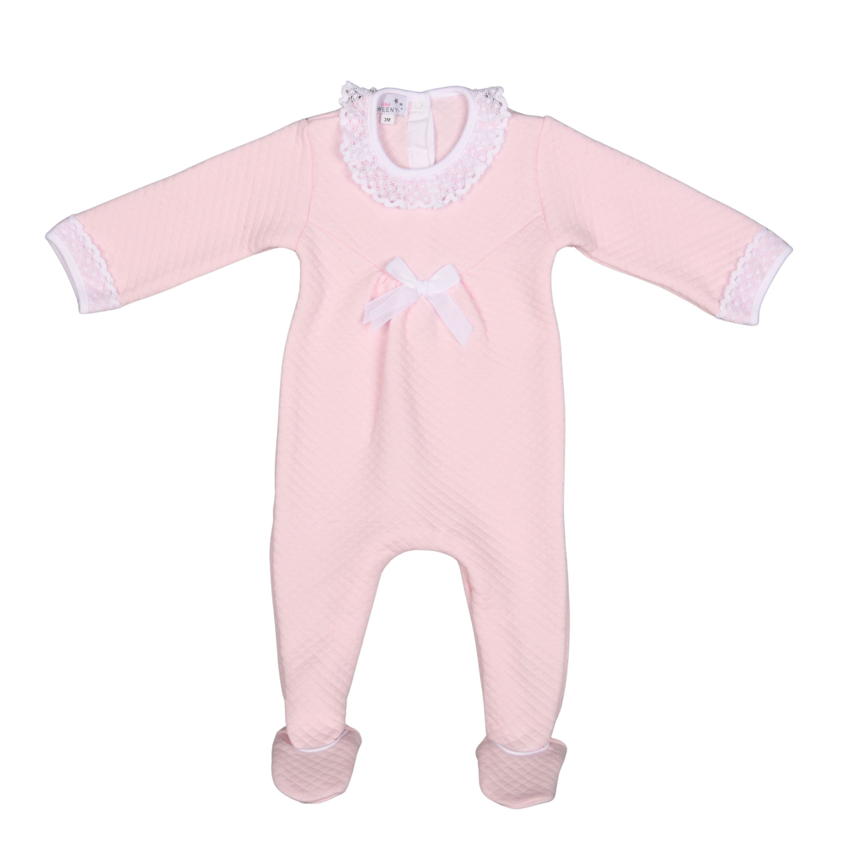 NOLA | Pale Pink Quilted Cotton Footed Baby All-in-One with Lace