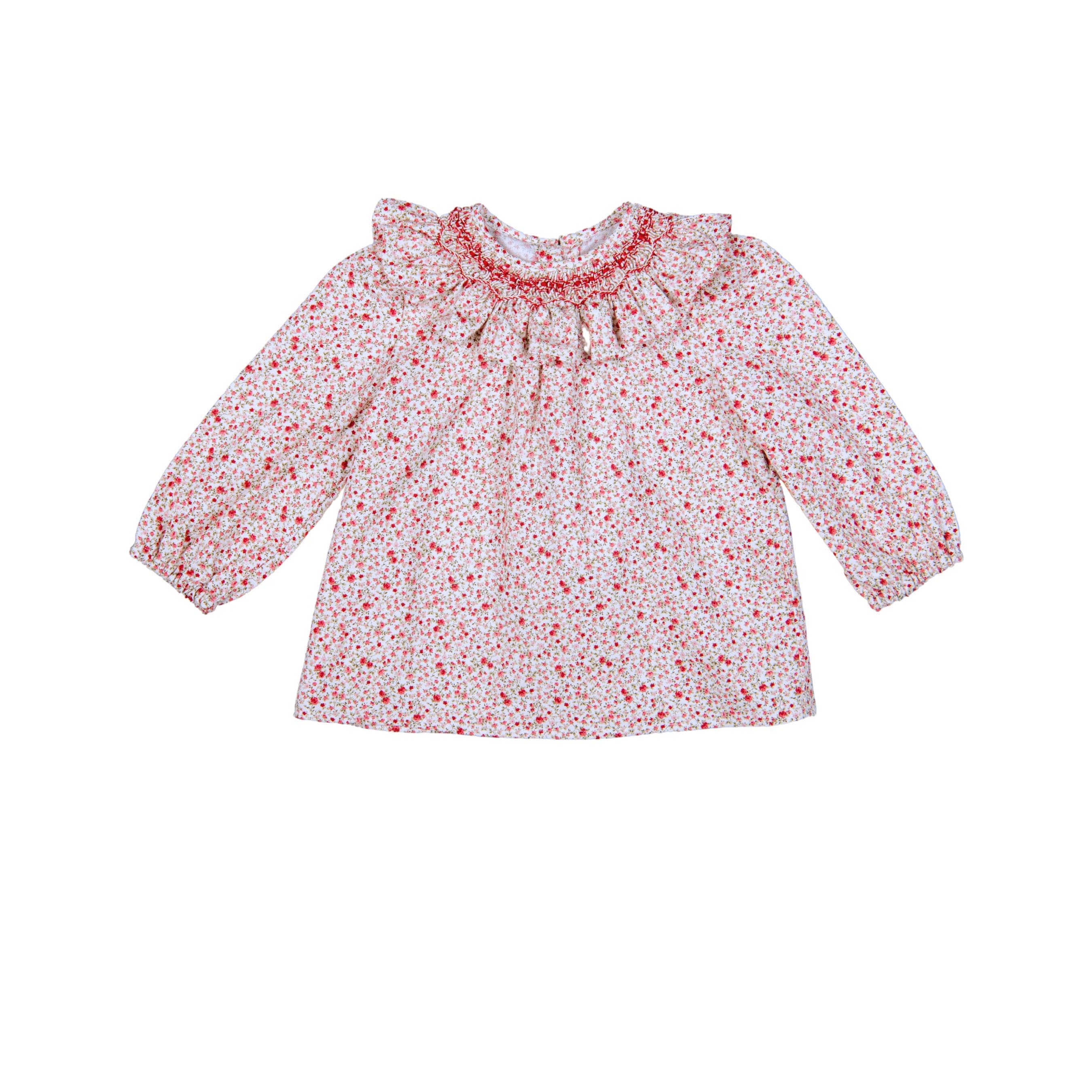 ELSA | Girls Red Hand-Smocked Floral Blouse