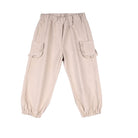 These trousers, made of soft cotton corduroy, are designed for little girls in a beige color. Featuring ruffled side pockets and elasticated cuffs at the ankle, they also have a comfortable, elasticated waistband.