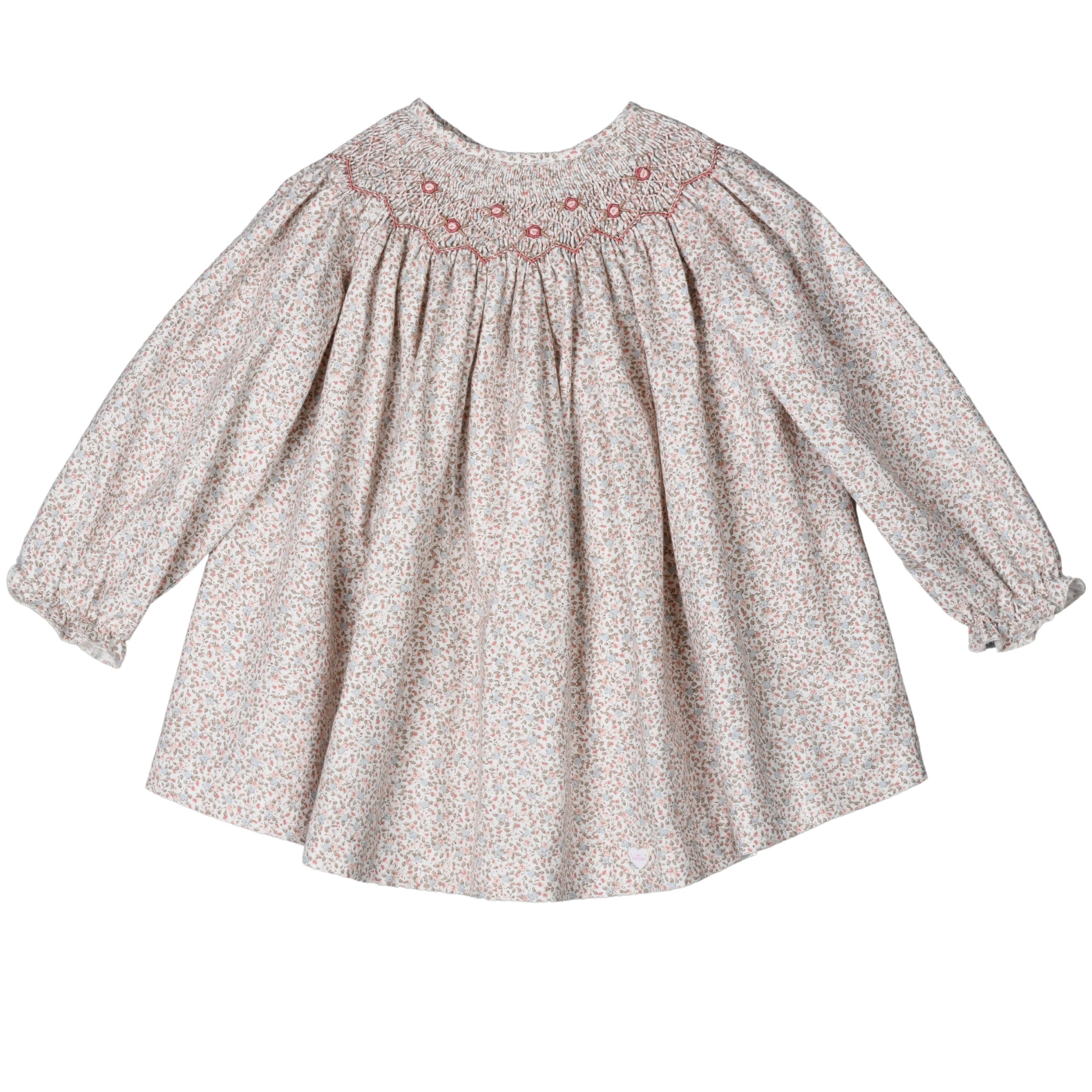 EDNA | Girls Pink Hand-Smocked Floral Dress