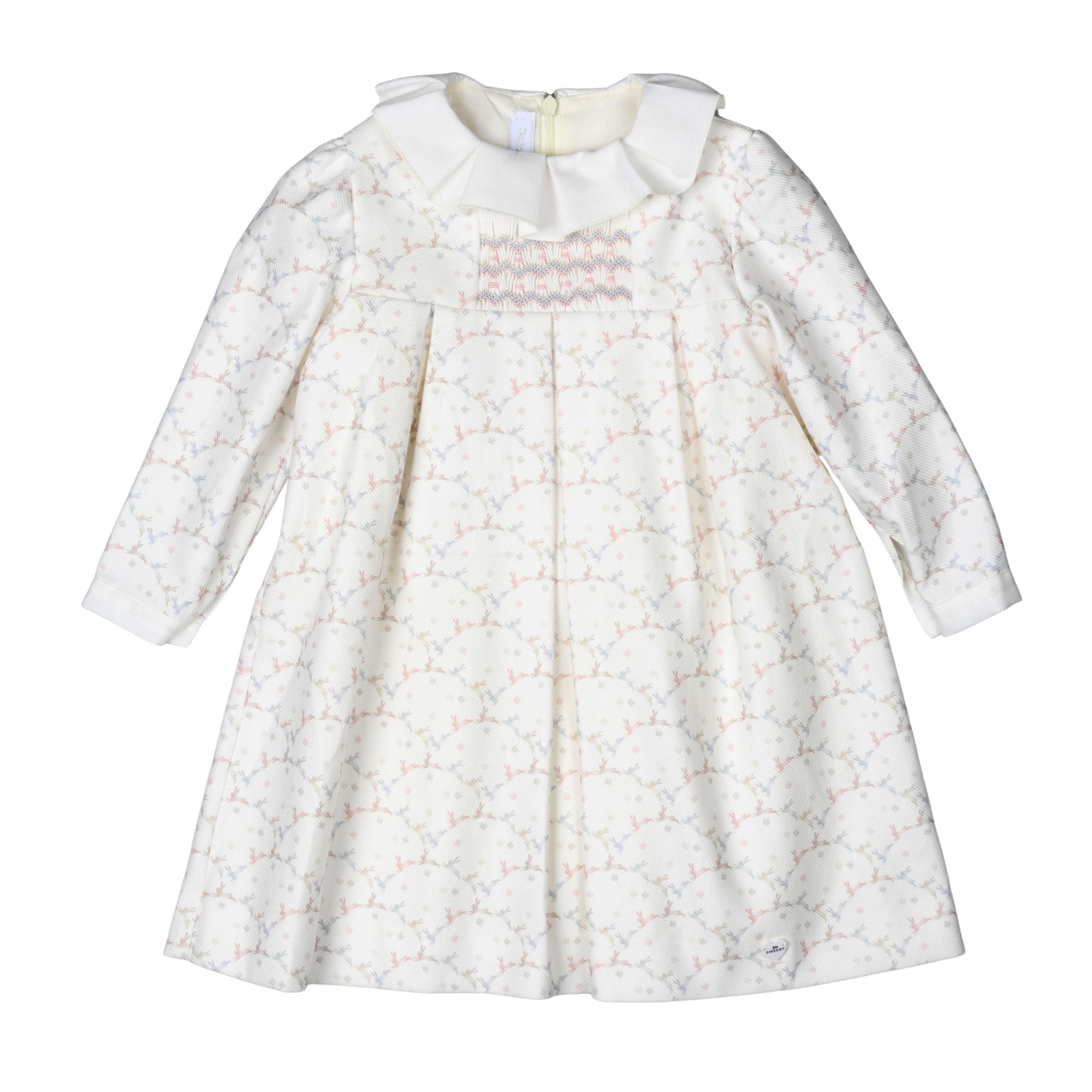EVY | Girls Ivory & Pink Festa Print Hand-Smocked Dress