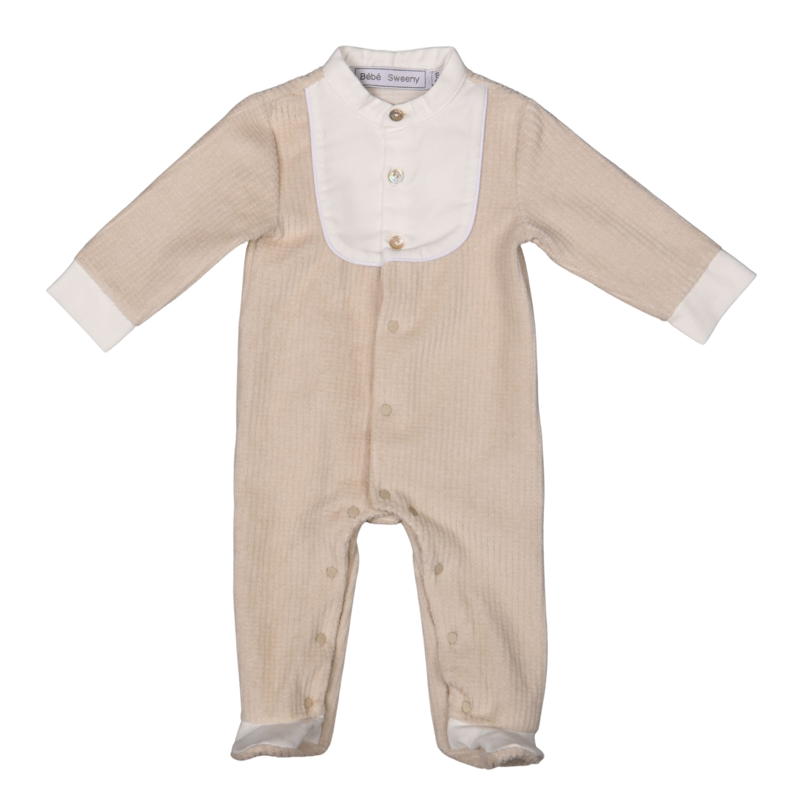 GALY | Boys Beige Embossed Velour All-in-One