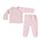Magnifique ensemble pantalon lilas pour bébé fille. Ultra doux et confortable, le pull se ferme sur le côté grâce à des boutons en bois beige naturel. Le pantalon assorti est long et possède une taille élastiquée. Complétez l'ensemble avec le bonnet et la couverture assortis disponibles dans la même collection.