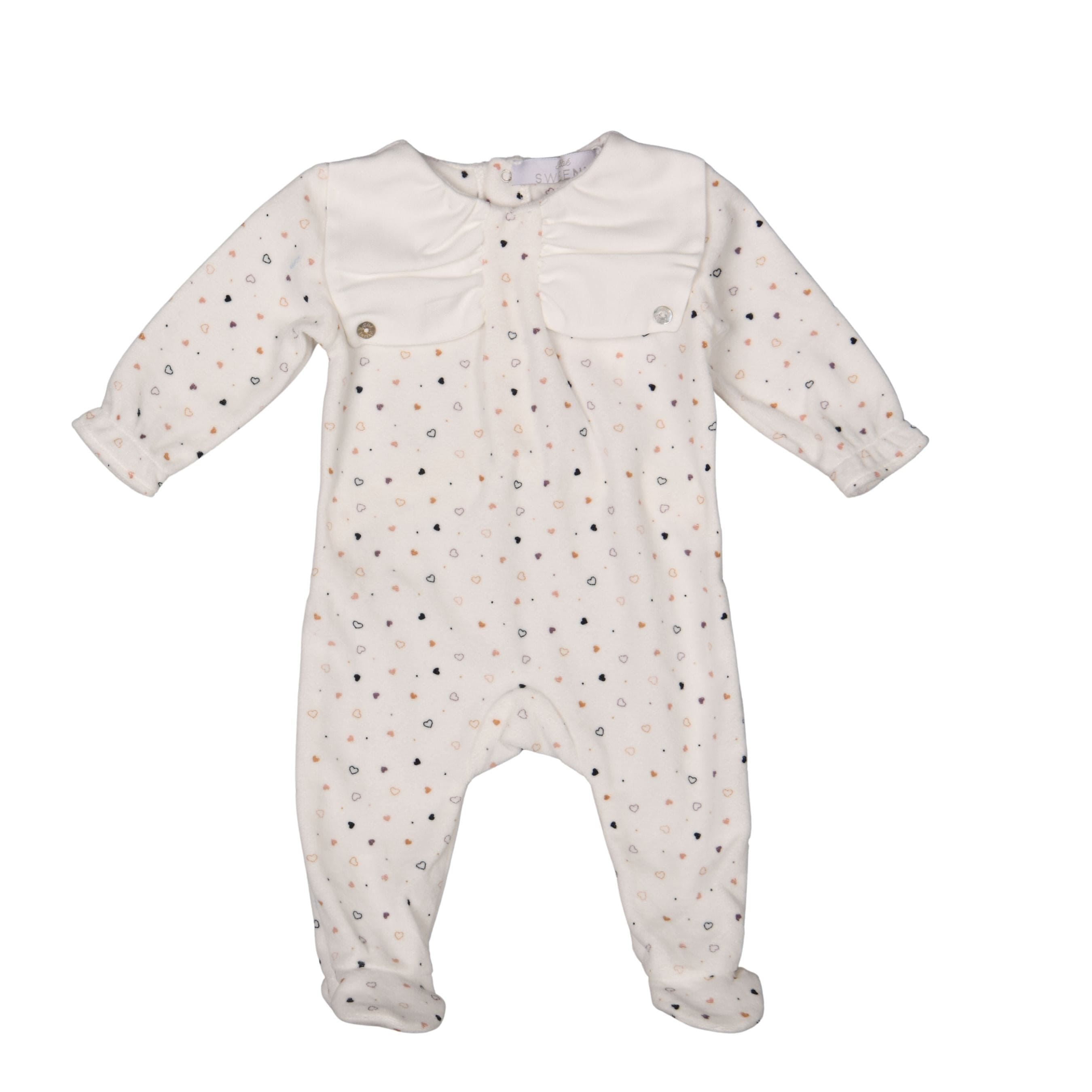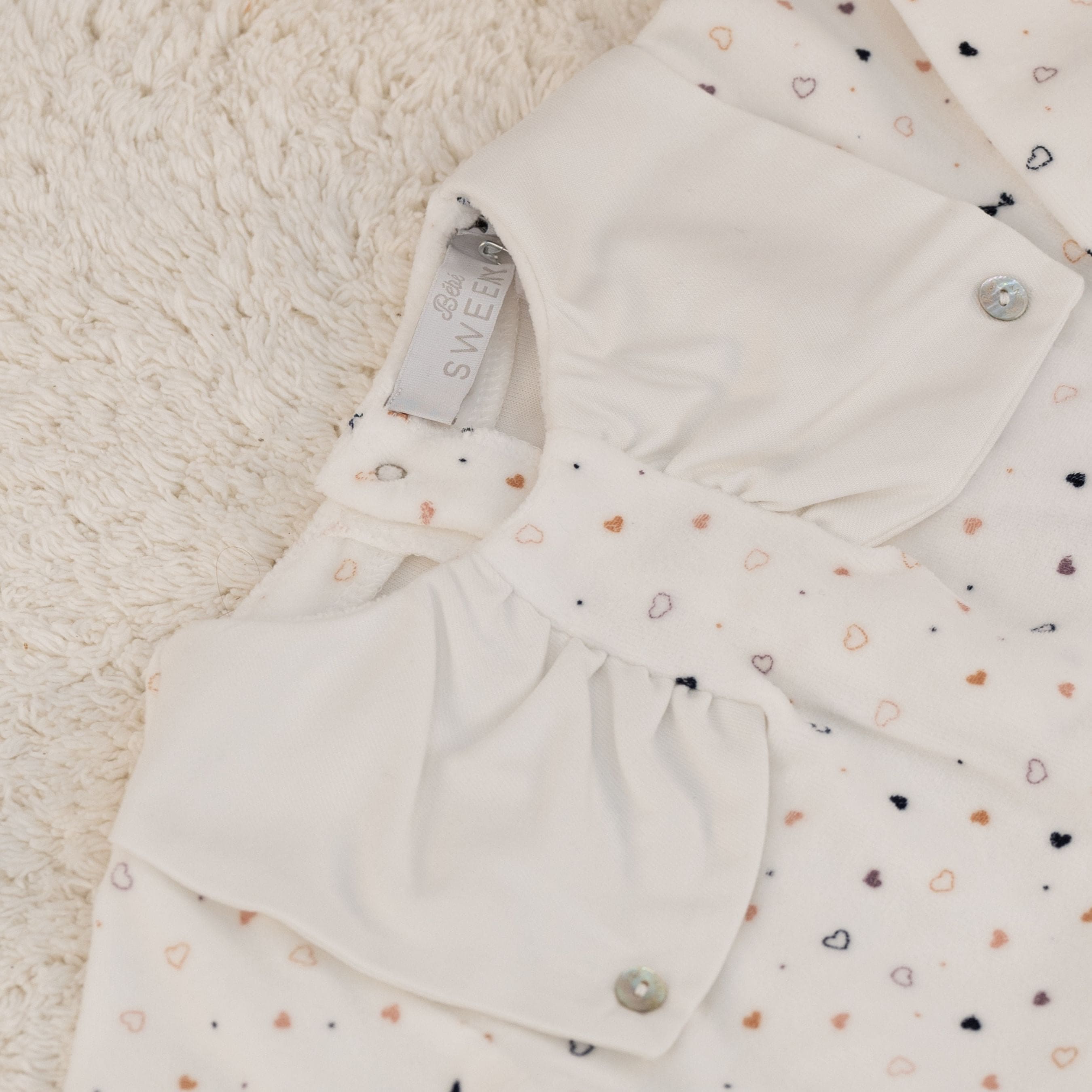 GIULIA | Baby Girls Ivory Heart Print Velour All-in-One