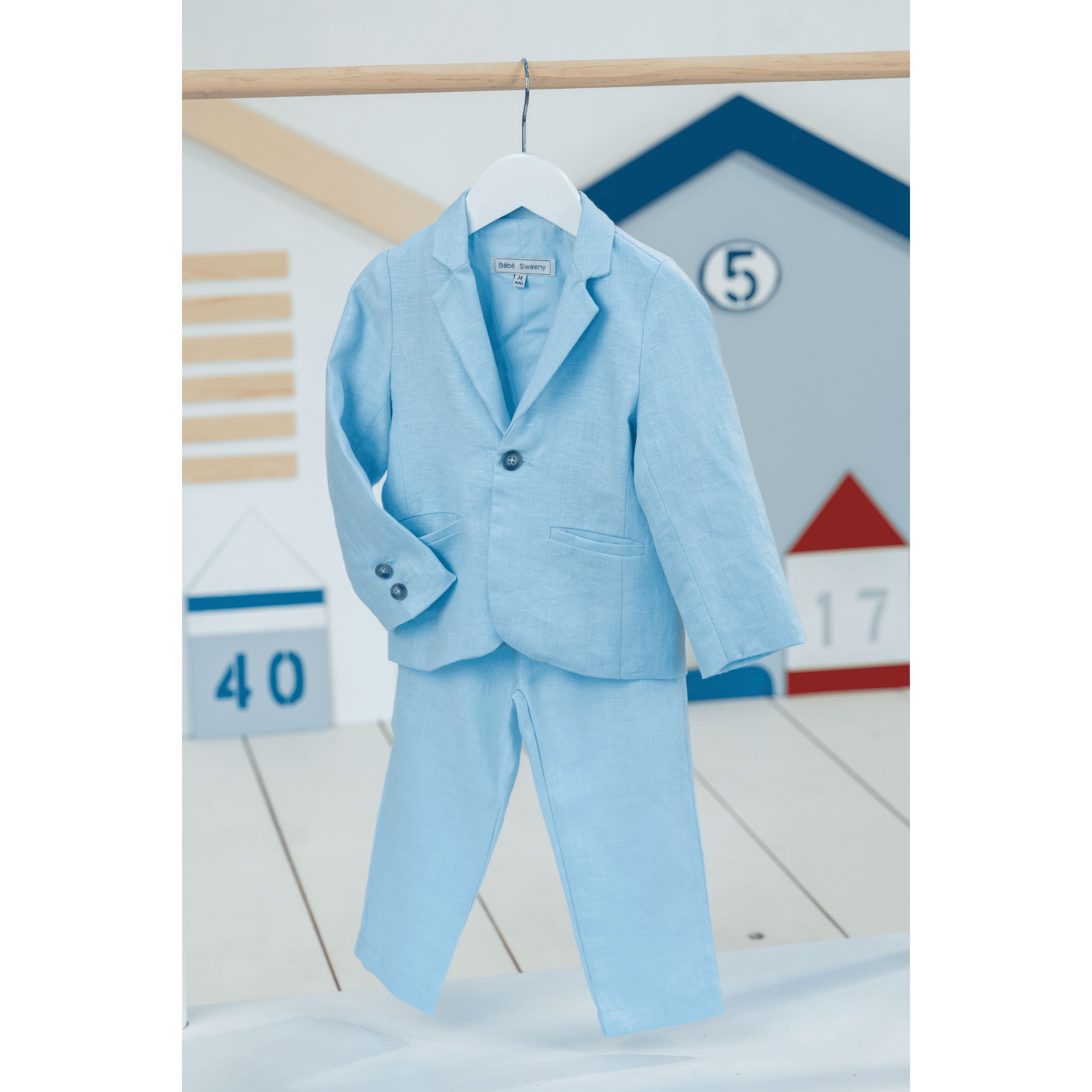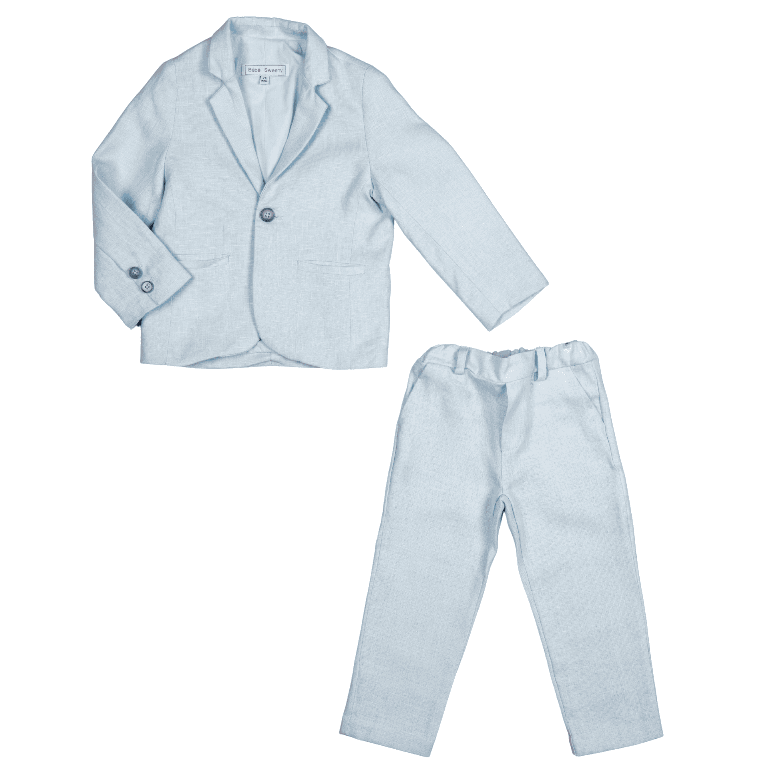 Made from lightweight linen, this boys' suit is perfect for formal events. The blue jacket is lined with soft cotton voile for breathability and comfort, while the trousers have convenient pockets and an adjustable waist for a customizable fit.