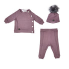 Ensemble legging fille noir prune confectionné en jersey de coton côtelé doux et extensible pour un confort tout au long de la journée. Le haut est doté d'une fermeture boutonnée sur le côté avec un logo en cuir cousu. Le legging a une taille élastiquée, douce pour les petits ventres, le bonnet est doublé en jersey doux avec un pompon en fourrure amovible.