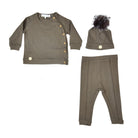 Ensemble legging Khai pour garçon confectionné en jersey de coton côtelé doux et extensible pour un confort tout au long de la journée. Le haut est doté d'une fermeture boutonnée sur le côté avec un logo en cuir cousu. Le legging a une taille élastiquée, douce pour les petits ventres, le bonnet est doublé en jersey doux avec un pompon en fourrure amovible.