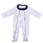 An elegant all-in-one crafted in soft cotton interlock, featuring our exclusive blue Toile de Jouy print and a refined navy double-gauze Peter Pan collar. Delicate piping details and a timeless silhouette make it a signature Bebe Sweeny piece for baby boys.